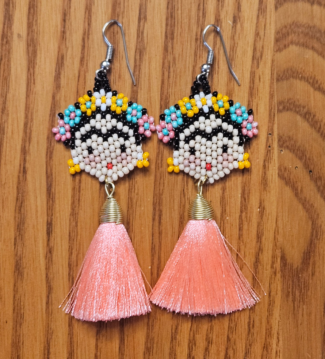 These beaded earrings are handmade in Oaxaca, Mexico. Artisans use their traditional beading knowledge and great talent to needle-wove and hand-tread carefully each beaded piece.